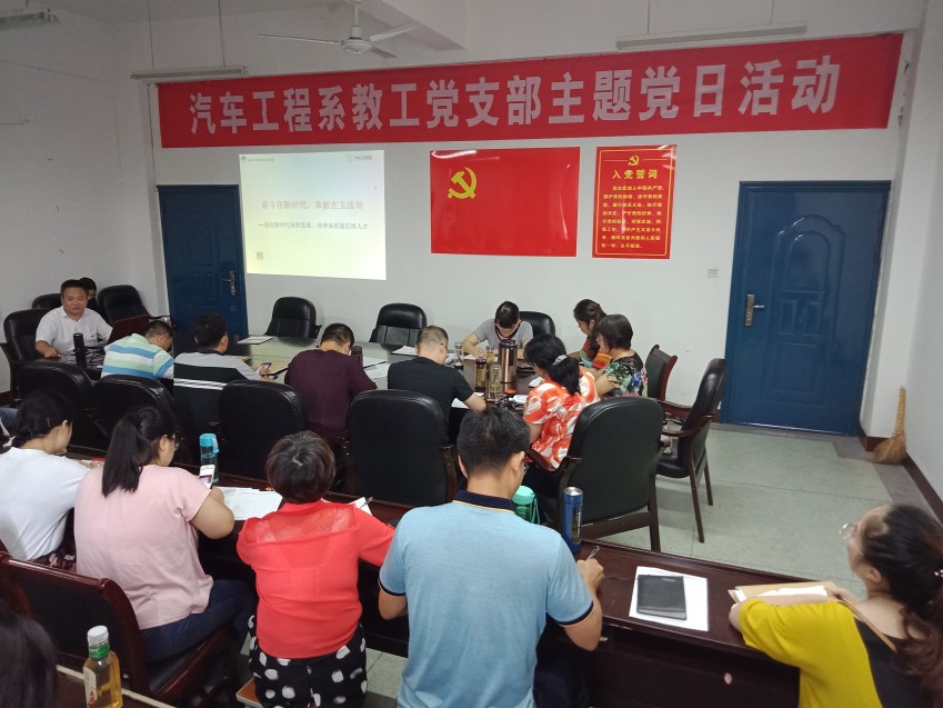 (通讯员 赵锐)为纪念中国共产党成立97周年,继续学习贯彻习近平总书记视察湖北重要讲话精神,推动“两学一做”活动的深入开展,7月6日下午,汽车工程系教工党支部在5508会议室召开了主题为“不忘初心铸党魂,牢记使命争先锋”的主题党日活动。