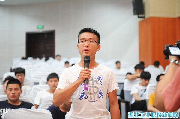汽车工程系党总支副书记张勇回顾了沈建军同学6岁帮母亲做饭和整理家务、高三举债为母亲治疗眼疾以及大二带着母亲来十堰的艰辛过往,并表示正是这种“压不弯的脊梁”和“怀德于心、践孝于行”精神,沈建军在校表现优异,进入社会凭借踏实肯干最终创业成功。“作为学生,也许现在我们还不能为父母分担生活的艰辛,但我们能做到的是让父母少操一些心,那就是认真掌握过硬的知识技能,以便将来在社会更好地立足、更好地孝敬父母……”该系15级学生王毅以“孝道与感恩”为题,畅谈了如何孝敬父母的感想与启发。