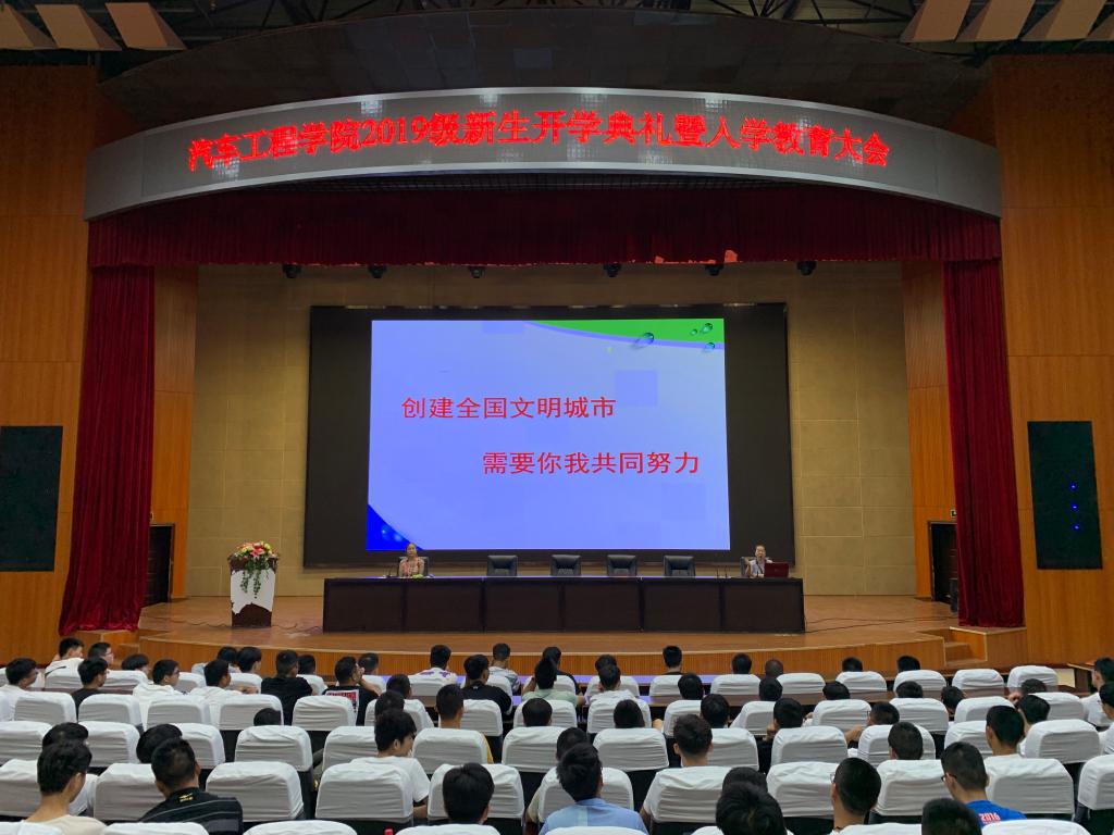 新闻网讯(通讯员 梁军萍)又是一年秋风起,天凉开学闹!为了欢迎2019级新生的到来,让同学们尽快地适应大学生活,汽车工程学院于9月2日上午8:30在会议中心召开2019级新生开学典礼暨入学集中教育。院领导班子、专业负责人、2019级辅导员及全体新生参加了大会。会议由pg国际电子网站党总支副书记梁军萍主持。