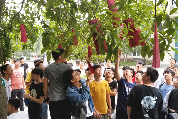 活动分为赏桂花、猜谜语、思乡情等环节,师生们踊跃参与活动,现场热闹非凡,气氛十分热烈。大家在活动展板上用文字表达思乡之情和对远方亲人朋友的祝福。谜语的谜面以中秋传统文化灯谜为主,同学们穿梭在桂花树下,讨论着那一张张写满谜语的红色卡纸,猜到正确答案的同学可以获得一份精美的小礼品。