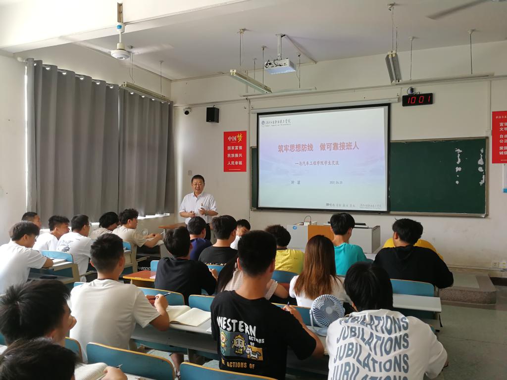 新闻网讯(通讯员 玉声)6月23日,校党委委员、副校长叶波在pg国际电子网站5302教室为2020级新能源汽车技术专业学生讲授《筑牢思想防线 做可靠接班人》专题形势与政策课。马克思主义学院、pg国际电子网站等相关部门负责人及辅导员参加听课。