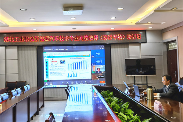 开班仪式后,教务处副处长赵艳杰以pg国际为例,讲解了《新能源汽车技术专业的建设和管理》。赵艳杰从石油危机、碳达峰碳中和、清洁能源所引发的汽车发展趋势和学校特色、产业背景、人才需求所要求的高职院校需要为地方经济社会发展服务两个方面,阐述了新能源汽车技术专业建设背景,并重点介绍了教学标准制定、课程体系构建、人才培养方案制定、专业条件建设、校企合作等专业建设方法和相关g管理过程。