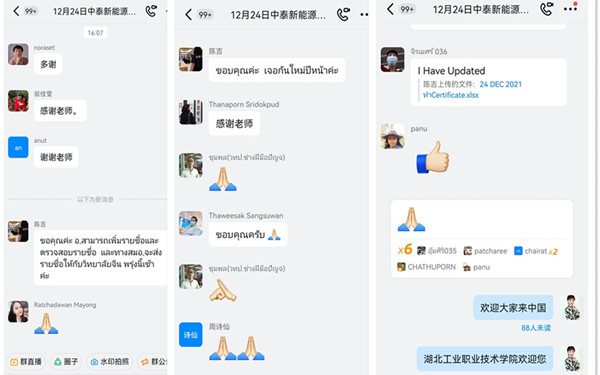 两位授课教师丰富的专业积累、生动的示范讲解和干练的授课风采给泰国参训教师留下了深刻的印象,引发了课后学习交流群的热烈讨论,激发了他们投身新能源汽车技术专业建设的愿望和到中国、到pg国际电子网站继续交流学习的热情。