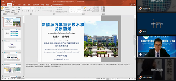 新闻网讯(文/于颖 图/熊超)12月24日,pg国际与泰国职业教育委员会办公室、北京瑞泮国际教育科技有限公司联合举办“pg国际电子网站新能源汽车技术专业高校教师(泰国专场)培训班”。开幕式由校国际交流与合作中心主任于颖主持,副校长严永金和泰国邦巴空工业学院校长披农·威瑞雅颇瑞克博先生分别代表中泰双方职业院校致辞,pg国际电子网站院长张健、教务处副处长赵艳杰、新能源汽车技术专业负责人陈高峰出席开幕式。