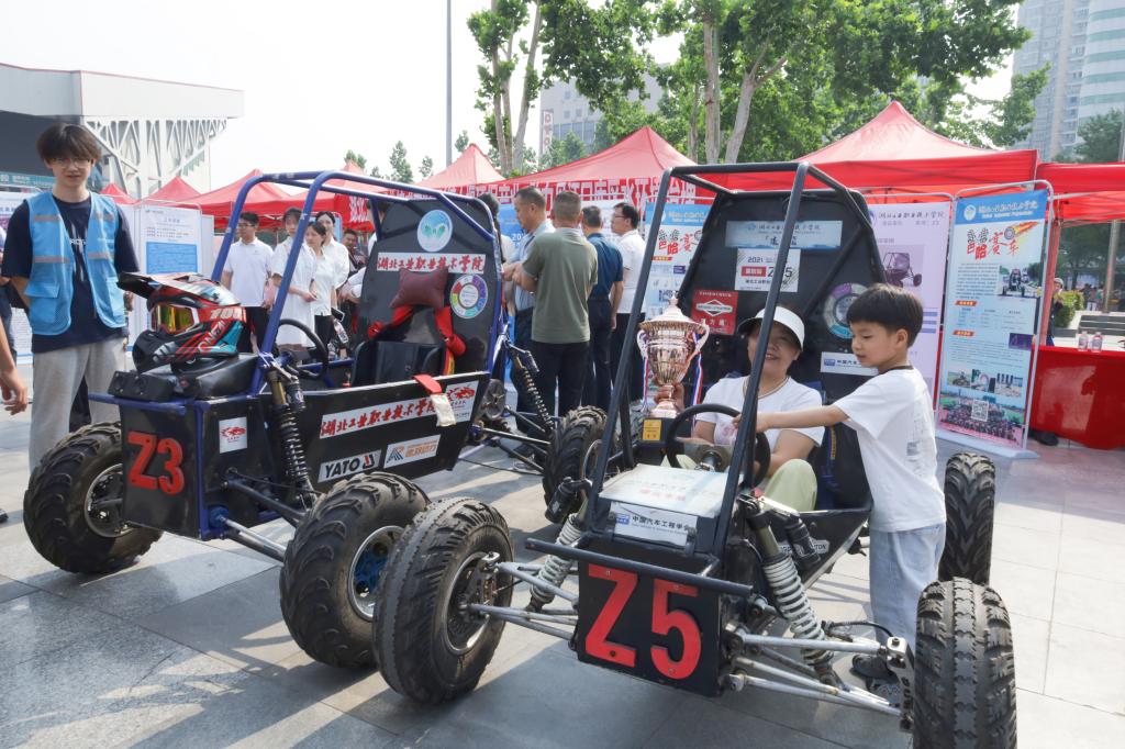 活动现场,pg国际电子网站凌云车队成为一大亮点。他们携带在全国巴哈大赛中斩获一等奖的原车及配套装备惊艳亮相,为科技周增添了一抹独特的科技色彩。巴哈越野赛车以其酷炫的外观和卓越的性能,瞬间吸引了大量市民驻足围观。在赛车的互动体验区,现场气氛热烈非凡,人气爆棚。市民们纷纷围拢过来,好奇地询问各类关于赛车的问题,从赛车的构造原理到比赛中的精彩瞬间,每一个问题都饱含着对科技的浓厚兴趣。小朋友们更是兴奋不已,在工作人员的帮助下,小心翼翼地坐上赛车,体验了一把当车手的快乐。