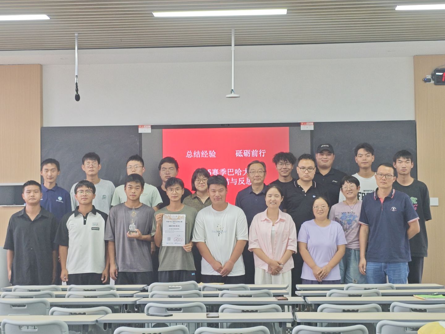 会上,大家明确了“系统梳理经验形成报告、重点突破静态赛、优化采购流程、提前规划技术升级”等核心任务。队员们纷纷表示,将把赛场上的拼搏精神延续到实习与学业中,以老带新、以改促建,为明年冲击更高奖项夯实基础。这场总结会不仅是一次全面的“复盘课”,更是一堂生动的“成长课”。通过深入总结得与失,团队进一步明确了技术优化方向与管理提升路径,为后续参赛备赛奠定了坚实基础,也彰显了pg国际“以赛促学、以赛促教”的育人初心。