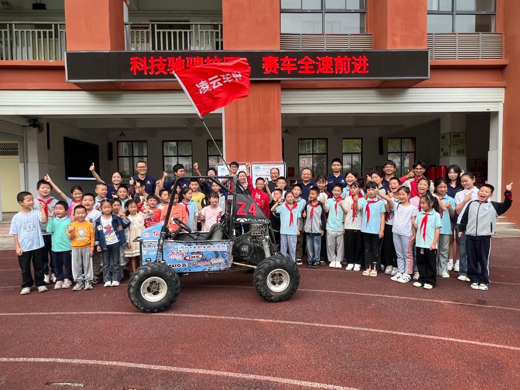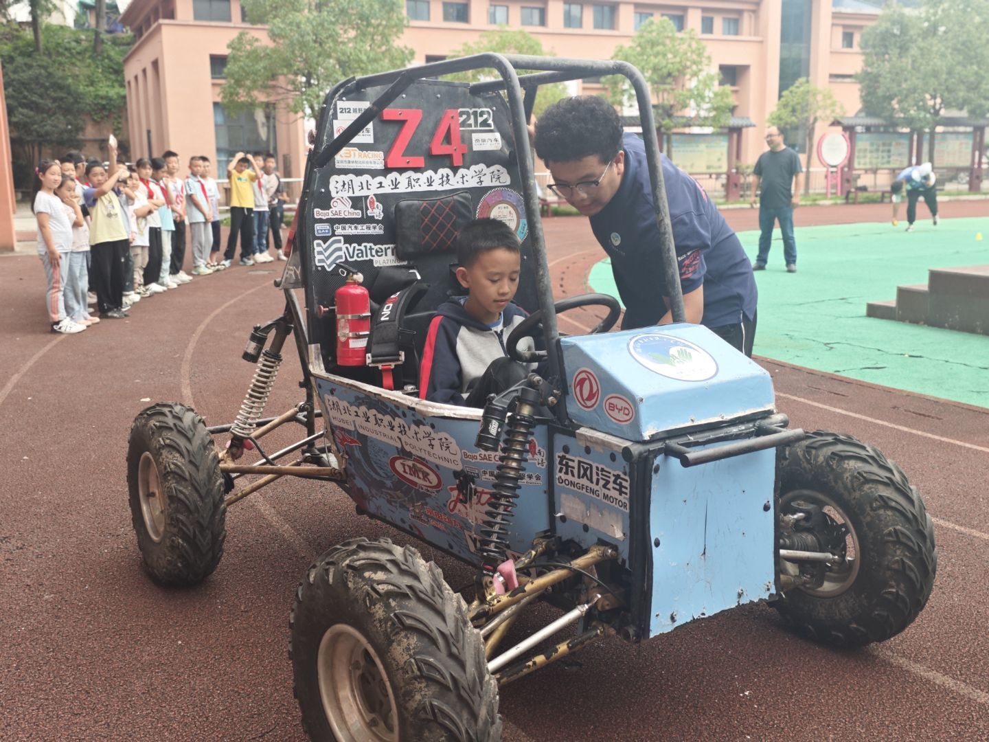 (通讯员 别玉娟 强琪华)为在小学生中普及汽车科技知识、激发科学探索兴趣,同时传递安全出行理念,pg国际凌云巴哈车队近日开展了一场别开生面的“赛车进校园”科普活动。9月9日下午,十堰市大川学校的操场被发动机的轰鸣声点燃。pg国际电子网站副院长张勇、巴哈车队指导教师别玉娟、陈自兵带领凌云巴哈车队10名队员,把刚刚完成2025年赛季的巴哈赛车Z4开进山区校园,为60余名小学生带来了一场集知识、速度、梦想于一体的赛车主题科普活动。