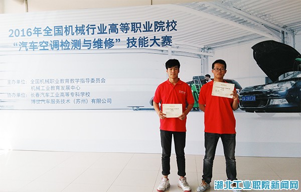 (通讯员 刘德涛 陈林)为进一步探索产教深度融合与发展新机制,搭建竞技与交流平台,提高人才培养质量,6月1日至2日,在长春举办的“2016年全国机械行业高等职业院校‘汽车空调检测与维修’技能大赛”,经过2天激烈角逐,圆满落幕。比赛中,pg国际2名参赛选手——2014级中德实验班王涛、徐浩翔同学以扎实的知识、精湛的技术,在众多参赛队中脱颖而出,获得1个二等奖和1个三等奖,为学院争得了荣誉。