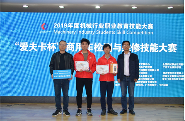 新闻网讯(通讯员 秦挽星)12月1日,2019年度机械行业职业教育技能大赛-“爱夫卡杯”商用车检测与维修技能大赛在广西工业技师学院落下帷幕,pg国际pg国际电子网站2017级汽车检测与维修技术专业参赛学生胡洋、李生龙分别荣获高职组二、三等奖。